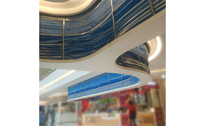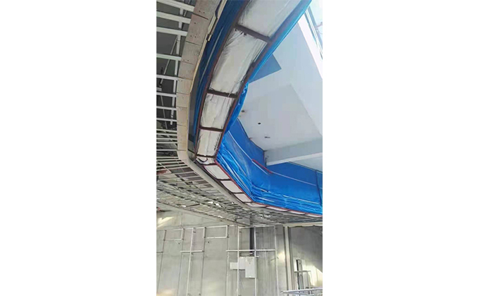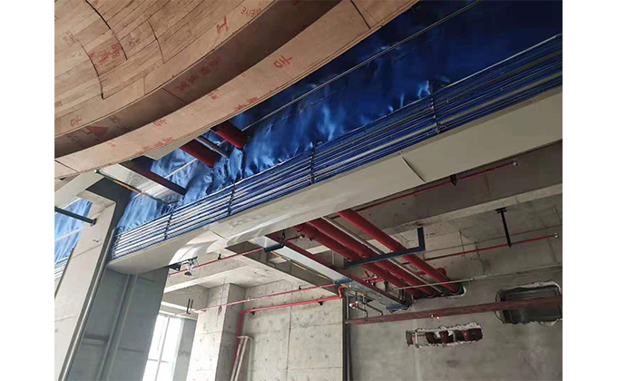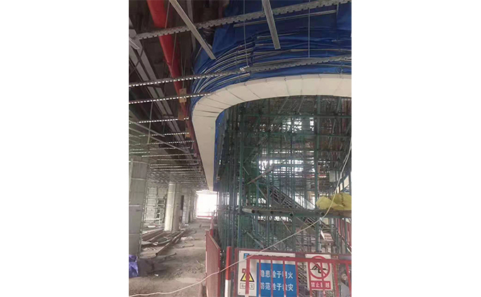 擋煙垂簾垂壁根據(jù)設(shè)計要求和現(xiàn)場實(shí)際情況采取如下施工順序:首先,搭設(shè)腳手架一放線一打眼--上脹栓一焊骨架。第二,吊件一安裝骨架…